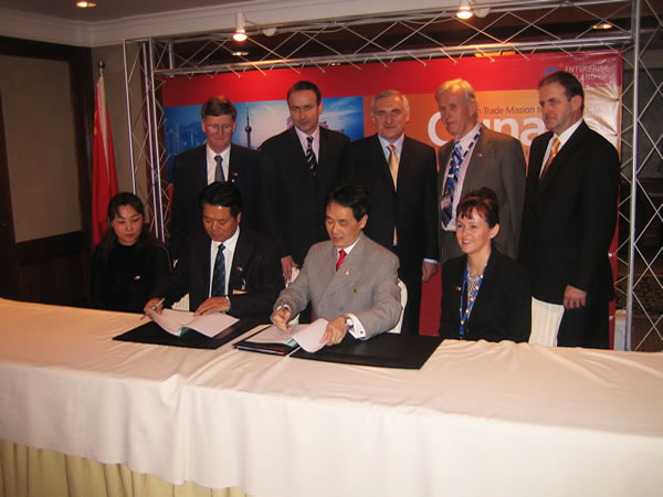 2005年1月21日沈陽青年國際旅行社有限公司董事長倪琛善與愛爾蘭UCD大學領(lǐng)導余曉晴簽定旅游及培訓協(xié)議。