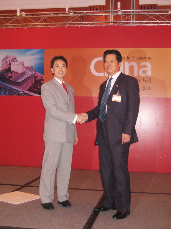 2005年1月21日沈陽青年國際旅行社有限公司董事長倪琛善與愛爾蘭UCD大學領(lǐng)導余曉晴在上海四季酒店會見。