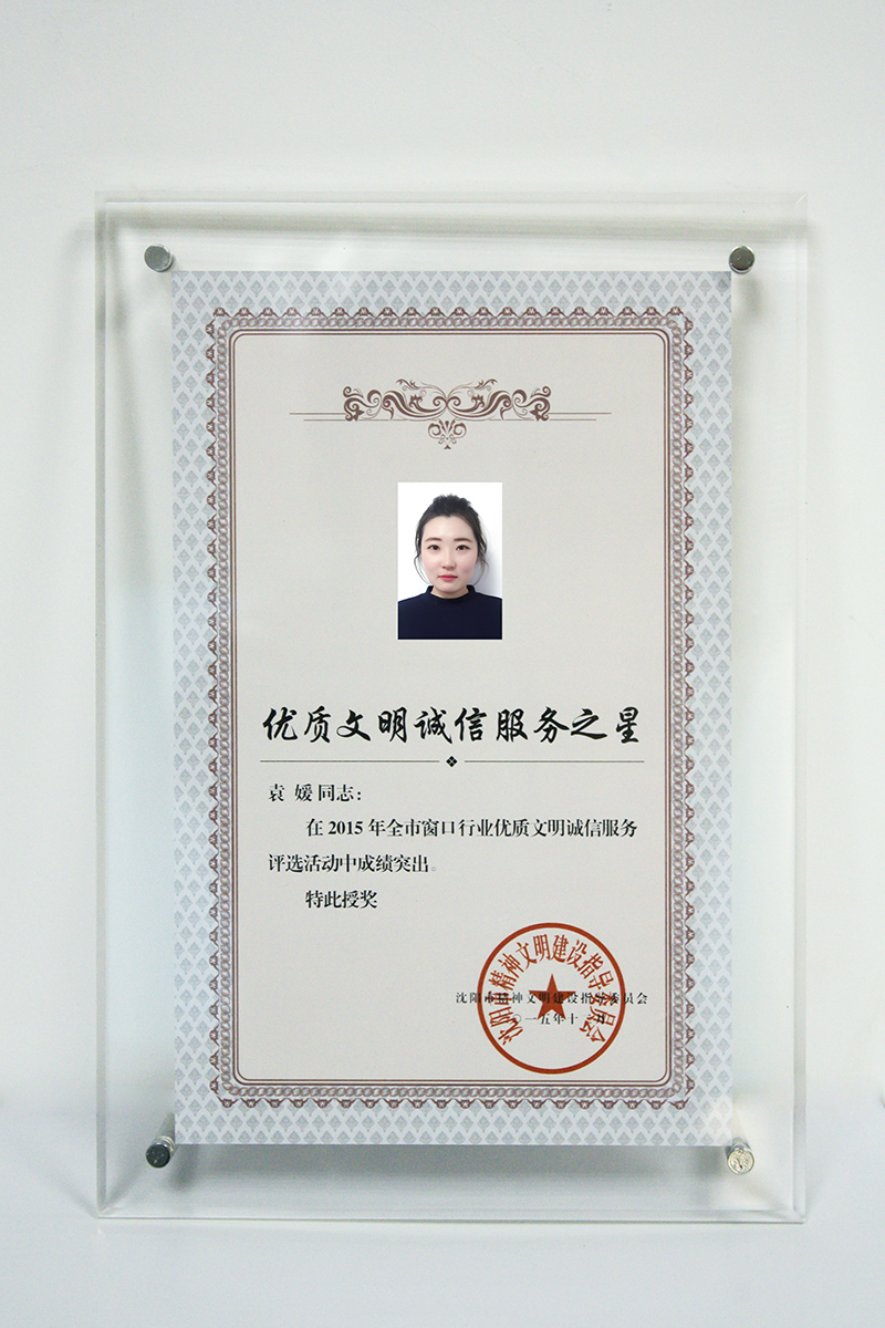 2015年12月沈陽青年國際旅行社大東店員工袁媛在2015年全市窗口行業(yè)優(yōu)質(zhì)文明誠信服務(wù)評選活動中獲得《優(yōu)質(zhì)文明誠信服務(wù)之星》稱號!同時沈陽市精神文明建設(shè)指導(dǎo)委員會為我社大東店頒發(fā)《優(yōu)質(zhì)文明誠信服務(wù)窗口》獎牌!