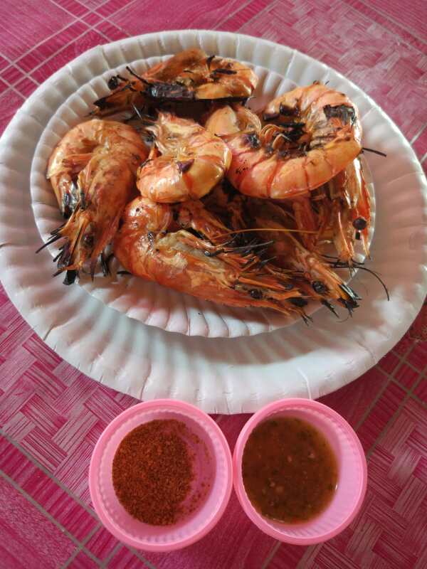中午在島上,還能點一些海鮮吃,價格也不貴,9只烤蝦110泰銖。