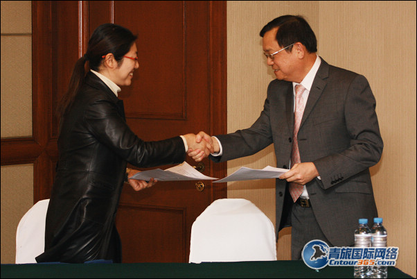 會(huì)上沈陽(yáng)青旅總經(jīng)理張新宇同KUONI集團(tuán)中國(guó)區(qū)總經(jīng)理方寶憲簽訂合作協(xié)議