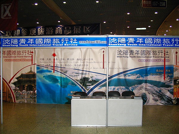 2004年8月5日,沈陽(yáng)青旅參加在大連舉辦的“2004中國(guó)遼寧·東亞國(guó)際旅游博覽會(huì)”。這次盛會(huì)有來(lái)自世界各國(guó)的官方旅游局、旅游組織、國(guó)際旅行社、地接社等。規(guī)?涨啊I蜿(yáng)青旅在本屆盛會(huì)上共設(shè)置10個(gè)展位,來(lái)宣傳青旅公司形象及旅游產(chǎn)品。