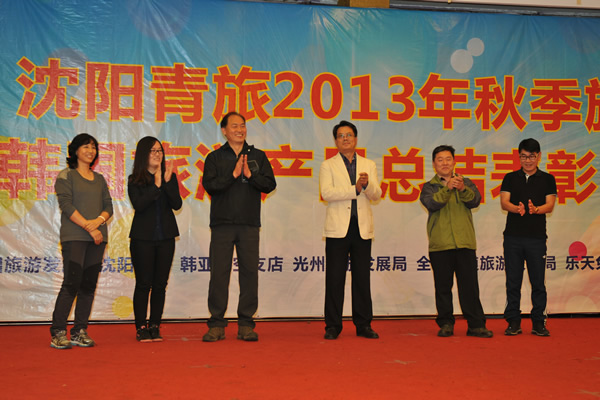 2013年10月12日-13日,沈陽青旅2013年秋季旅游暨韓國旅游產(chǎn)品總結(jié)表彰聯(lián)歡會(huì)在本溪關(guān)門山、同泉溫泉度假村舉行。韓國旅游發(fā)展局社長樸正夏、韓亞航空支店長金珍、韓國欣欣旅行社總經(jīng)理金龍渙、韓國新羅免稅店所長金東元、韓國樂天免稅店劉康妮等韓國各界領(lǐng)導(dǎo)、同業(yè)及友人到會(huì)同慶。