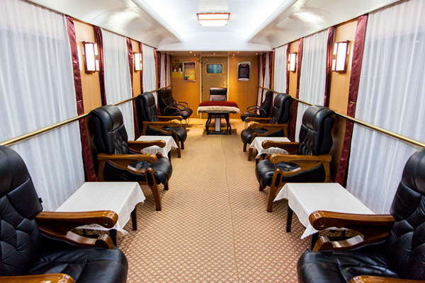 2015年1月3號,新年的伊始,沈陽青旅打響了15年旅游市場的第一炮。2015青旅號豪華觀光列車正式啟動,首發(fā)團駛?cè)腴L白山。青旅號作為豪華觀光列車,絕對的實至名歸,全車配備64張軟臥,每節(jié)車廂都配備相應(yīng)的多功能活動車廂和娛樂車廂,在列車上餐車、小型會議室、全自動麻將機、卡拉OK、座談室等一應(yīng)俱全,更有高級包廂,2人一間并配有獨立衛(wèi)生間。