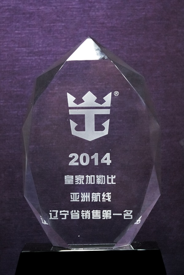 2015年1月14日 皇家加勒比國(guó)際游輪2014年度頌獎(jiǎng)晚宴在上海舉行,晚宴上,舉行了“2014年皇家加勒比亞洲航線銷(xiāo)售前十名”頒獎(jiǎng)典禮,我社獲得“皇家加勒比亞洲航線遼寧省銷(xiāo)售第一名”