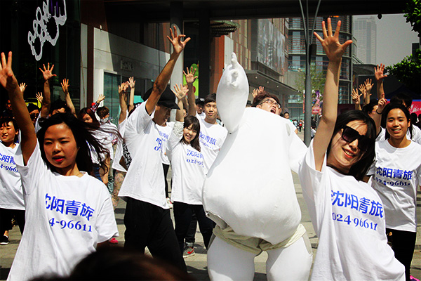 2015年4月26日下午,由沈陽青旅獨家策劃的周末街頭快閃活動在沈陽中街大悅城門前廣場火爆舉行,主持人大兵從天而降更是引爆了現(xiàn)場本就熱烈的氣氛,活動現(xiàn)場熱鬧非凡,給每一位經(jīng)過中街的行人留下了深刻的印象。