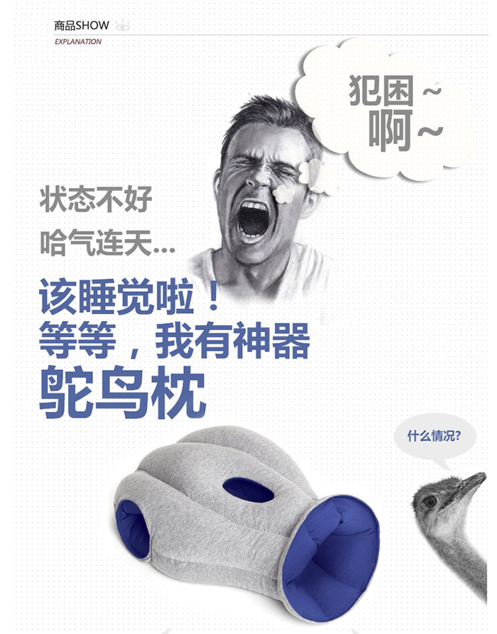 經(jīng)常外出坐硬座的朋友們都知道那是怎樣的一種煎熬,想睡又睡不好,不睡又挺不住,累啊,現(xiàn)在鴕鳥枕的發(fā)明讓您即使是坐著也一樣擁有好睡眠,火車,汽車,學(xué)生,上班族,只要是您人在旅途,鴕鳥枕頭都是您最好的選擇,為您隔絕噪雜混亂的環(huán)境,還您一個(gè)完美的睡眠!