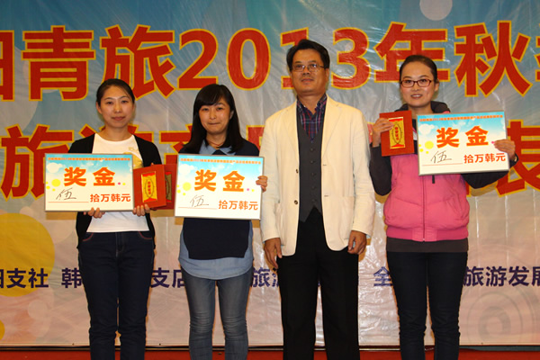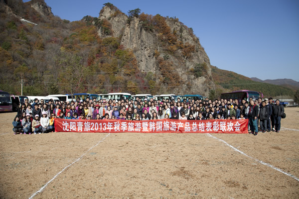 2013年10月12日-13日,沈陽青旅2013年秋季旅游暨韓國旅游產(chǎn)品總結(jié)表彰聯(lián)歡會(huì)在本溪關(guān)門山、同泉溫泉度假村舉行。韓國旅游發(fā)展局社長樸正夏、韓亞航空支店長金珍、韓國欣欣旅行社總經(jīng)理金龍渙、韓國新羅免稅店所長金東元、韓國樂天免稅店劉康妮等韓國各界領(lǐng)導(dǎo)、同業(yè)及友人到會(huì)同慶。
