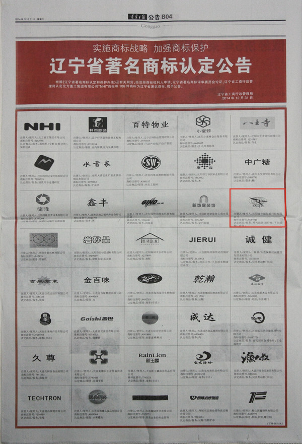 12月31日 根據(jù)《遼寧省著名商標(biāo)認(rèn)定和保護(hù)辦法》及有關(guān)規(guī)定,遼寧省工商行政管 理局認(rèn)定 沈陽(yáng)青年國(guó)際旅行社有限公司“沈青旅”商標(biāo)為遼寧省著名商標(biāo)!
