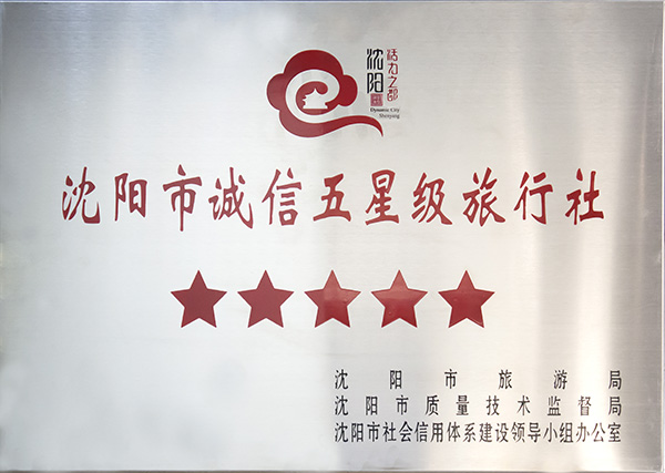 熱烈慶祝沈陽青年國際旅行社被“沈陽市旅游局”和“沈陽市質(zhì)量技術(shù)監(jiān)督局”評為:《沈陽市誠信五星級旅行社》!