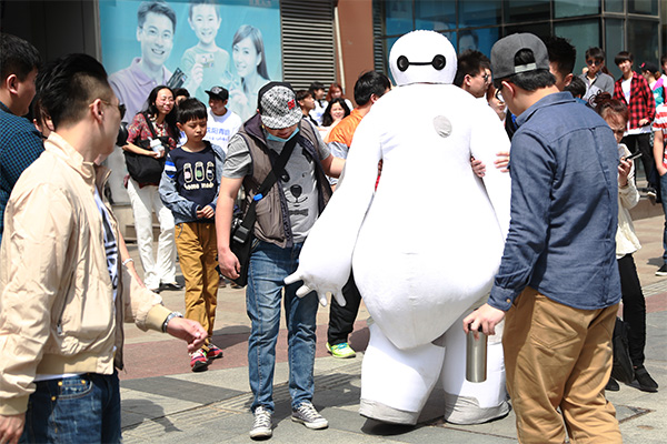 26日下午13:00,沈陽中街大悅城門前廣場像每個周末一樣人頭攢動,人們想平日一樣行走在周末擁擠的街頭。忽然,數(shù)十名年輕人從四面八方聚集至此,他們紛紛脫下自己的外套,方才還紛亂的街頭瞬間形成了一個整齊的方陣,同時還有一個可愛的“大白”人偶在方陣中間動感的跳舞,格外惹眼。這時候,人群中想起了音樂,原來是主持人大兵的新神曲《撓撓》,伴著勁爆的音樂,參與快閃的舞蹈演員們精彩的表演著節(jié)目,現(xiàn)場所有行人都不免駐足觀看。這時,大白將頭套摘掉,人群中爆發(fā)出了一陣尖叫——原來一直在人群中走動的“大白”竟然是著名主持人大兵。