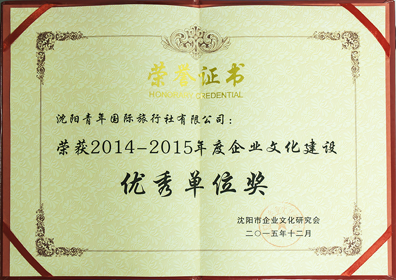 沈陽青年國際旅行社獲得企業(yè)文化建設(shè)優(yōu)秀單位獎